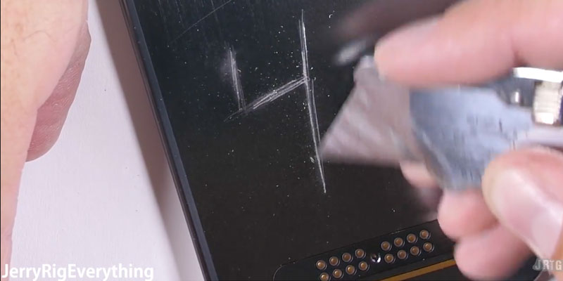 Bagaimana jika benturan atau goresan mencapai lebih dari skala 2,5 Mohs? Bisa dipastikan semua bagian depan smartphone ini akan benar-benar tergores. Selain itu, tombol fisik Home yang terintegrasi dengan sensor fingerprint juga mudah tergores. Namun meski tergores, fingerprint tetap berfungsi normal.